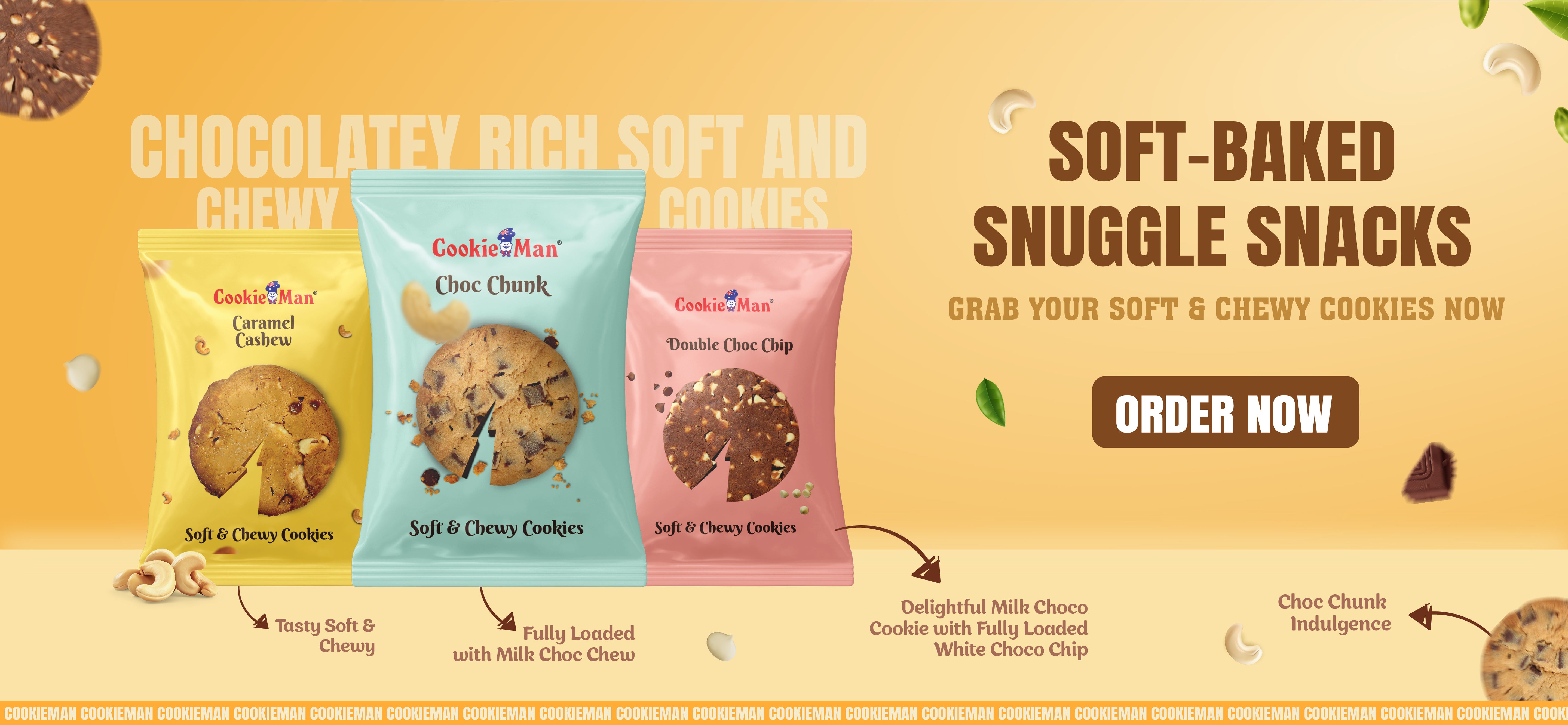 The CookieMan product line is unique, of high quality and good value for money. In India too, the cookies are made from the finest ingredients available, ensuring that the products meet stringent global quality and consistency guidelines. All cookie dough, toppings and related materials are produced in the CookieMan Commissary in Chennai.