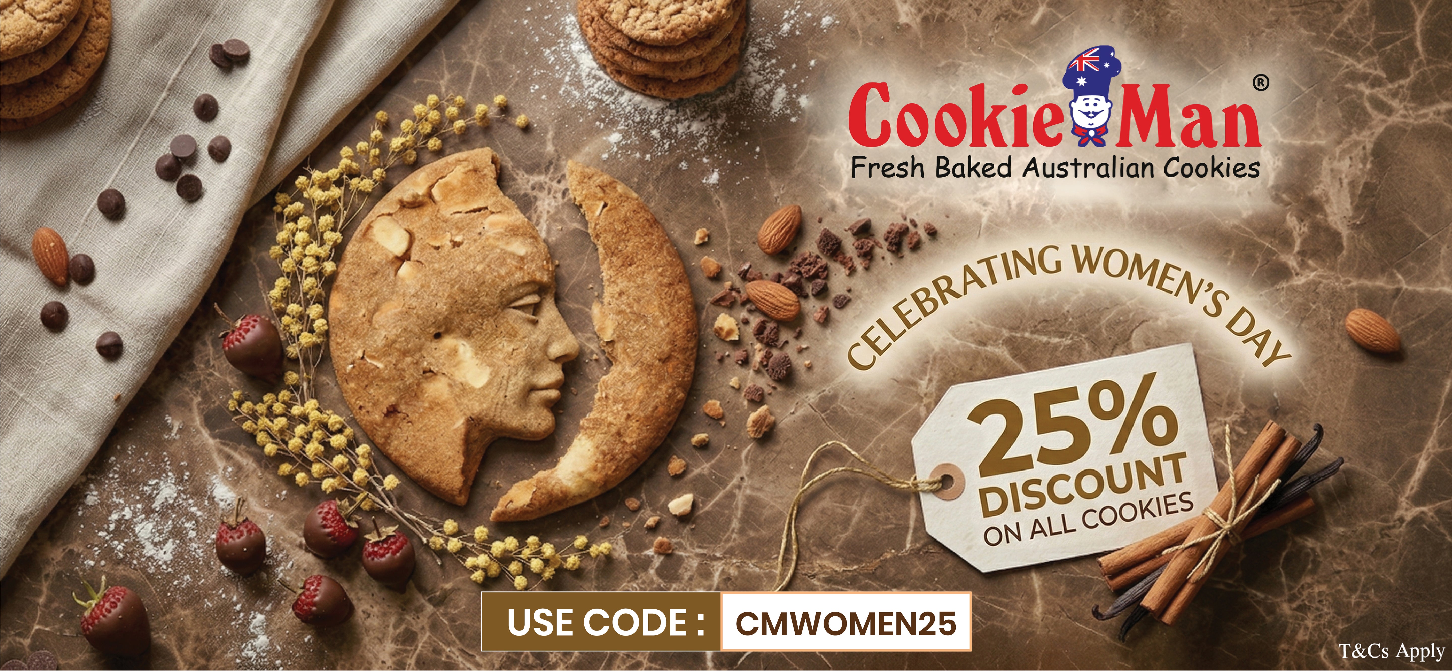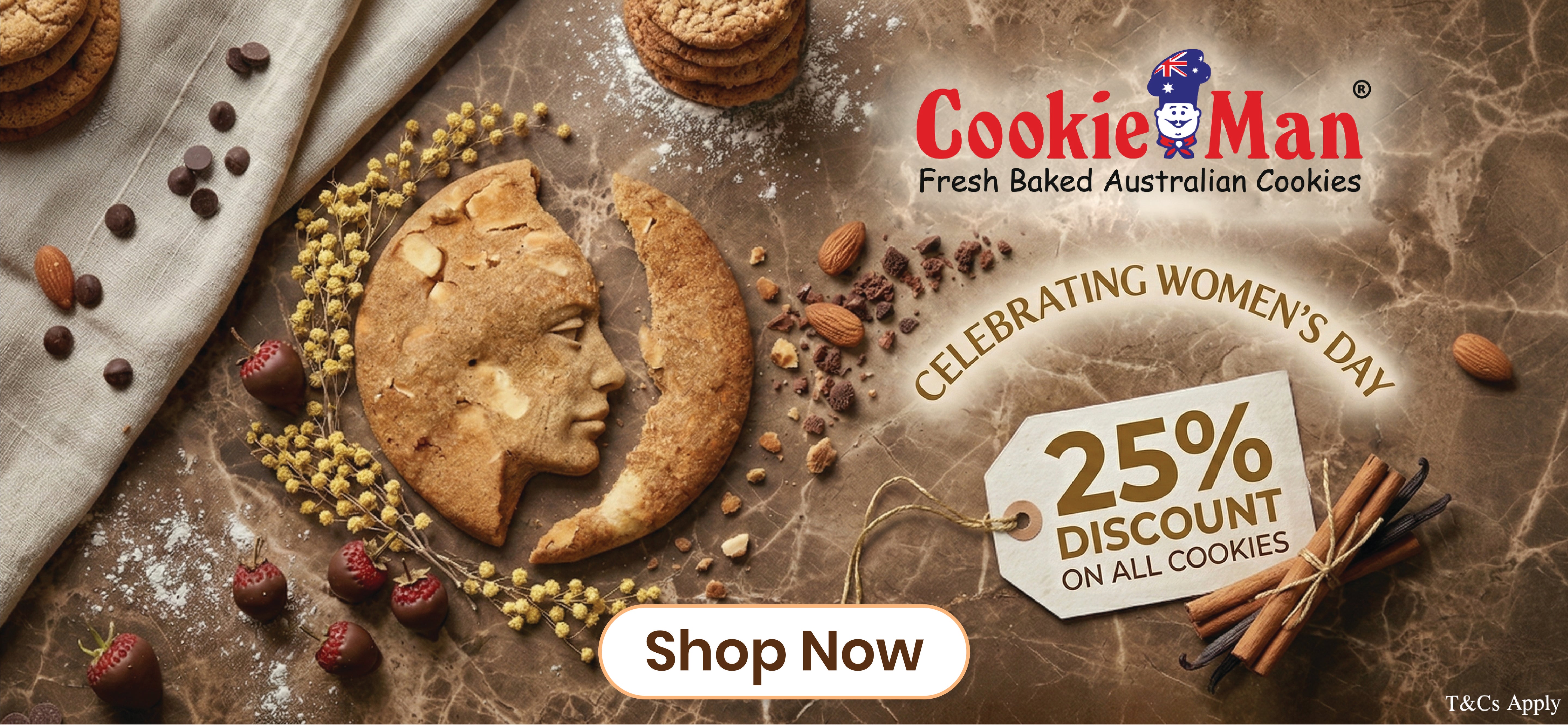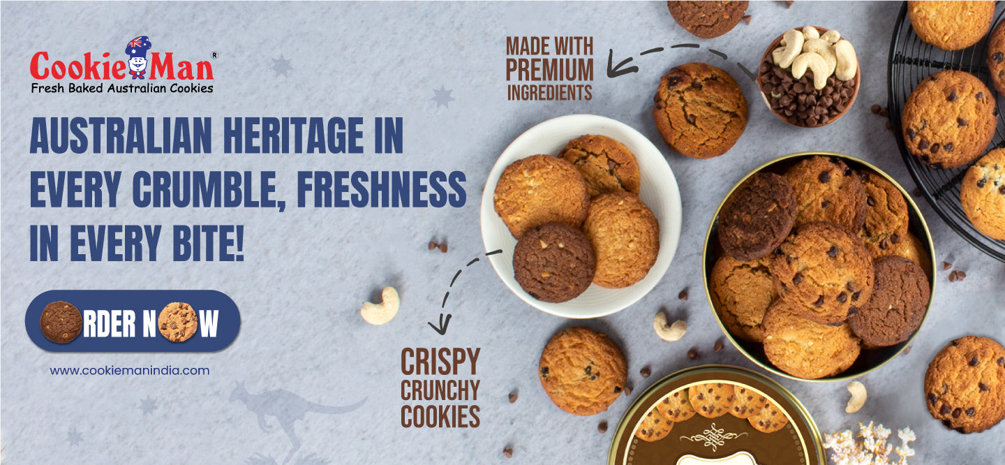 CookieMan markets a diverse line of fresh baked Australian cookies in India. There are more than fifty varieties of cookies available. The flavours include Choc Chip, Coffee Walnut, Brandy Snap, Honey and Oats, Coconut Macaroon, Shortbread, Peanut, Ginger and many, many more. Even the famous Australian “Anzac” cookie is available right here in India.