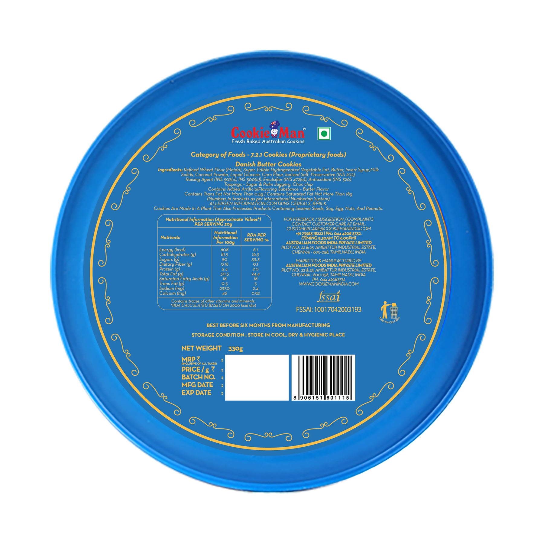 Consumer Care Email id: customercare@cookiemanindia.com