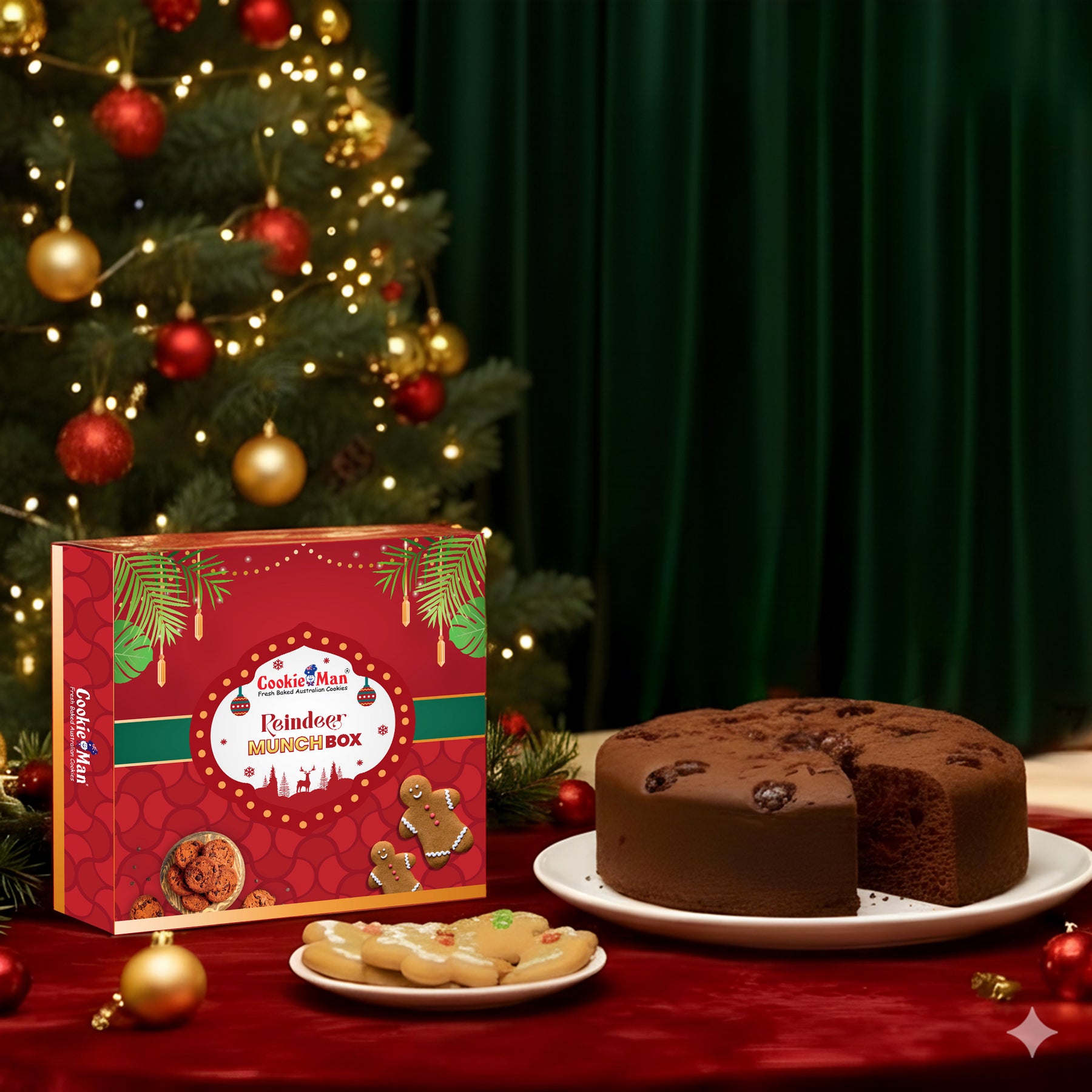 • ULTIMATE HOLIDAY TRIO (390g Total): Includes Rich Plum Cake (200g), Choc Chunk Cookies (120g), and Traditional Gingerbread Cookies (70g).