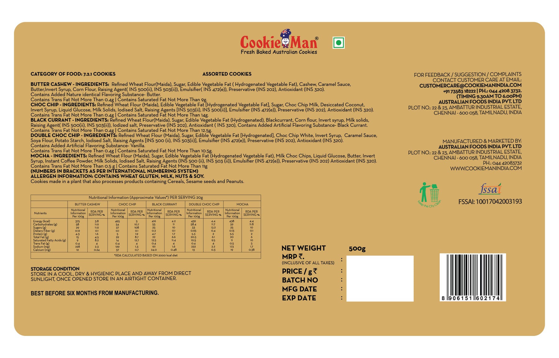 Choco Chip, Double Choco Chip, Butter Cashew, Mocha and Black Currant