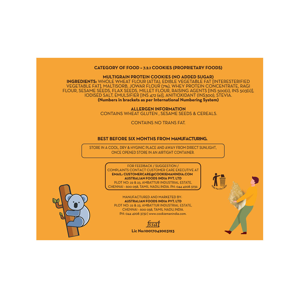 Whether you're looking for a healthier alternative to traditional biscuits or a delicious way to fuel your day, CookieMan Sugar-Free Multigrain Protein Cookies are the perfect choice.